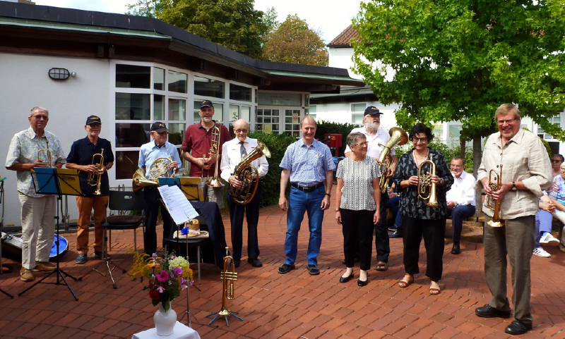 Der Weilimdorfer Posaunenchor war im Sommer 2022 nicht nur in Weilimdorf „aktiv“, es wurde auch der ehemalige wie langjährige Pfarrer und Posaunisten Hartmut Häcker in Öhringen besucht.